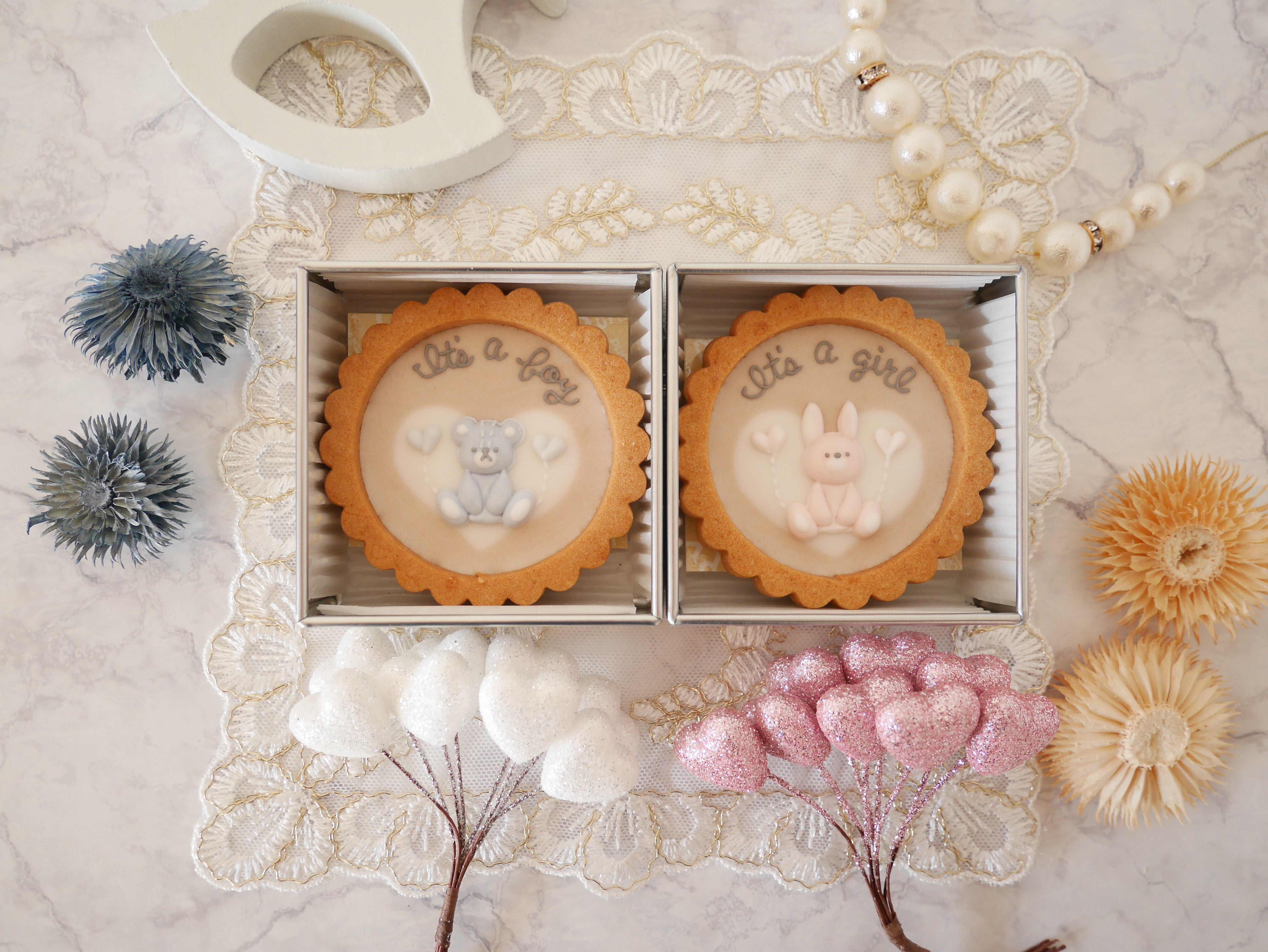 双子対応も可能です。画像は通常版ジェンダーリビールアイシングクッキーの商品画像5枚目を参考にしてください。